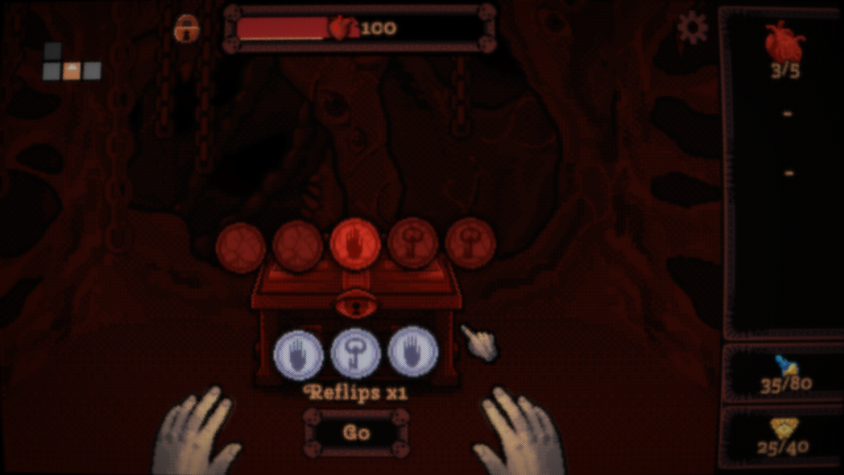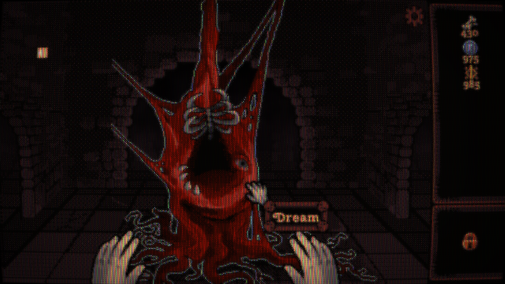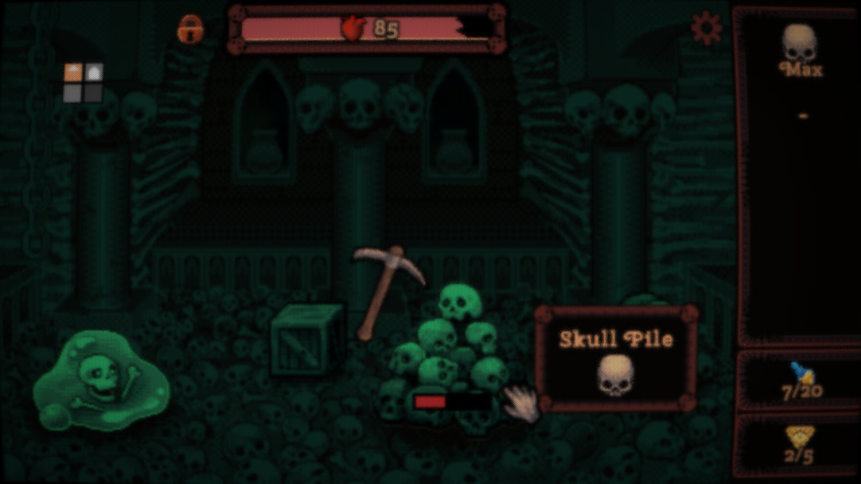 Crawl carefully through the labyrinthine corridors below. Swing your pickaxe at brittle bones, living flesh, and otherworldly artifacts. Collect divine blood and gain insight beyond the veil of reality. Avoid traps, loot treasure chests, and offer yourself to cosmic powers.
